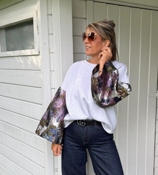 Sweater grijs flower met wijde mouwen BLUE/PINK