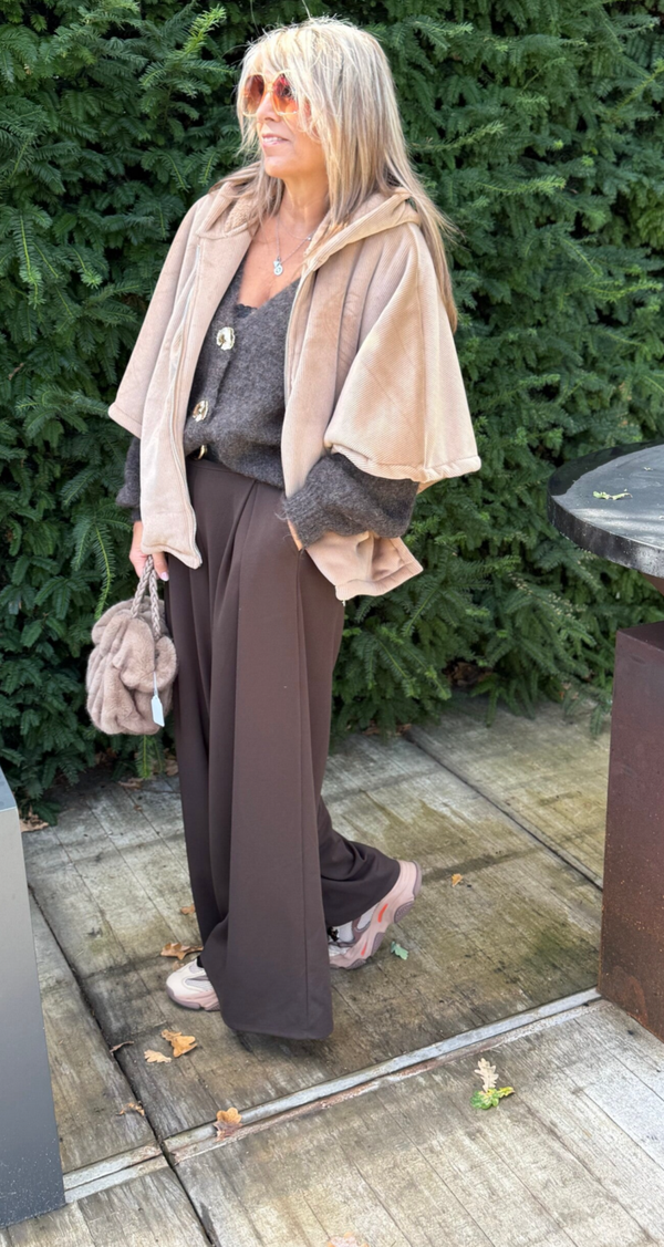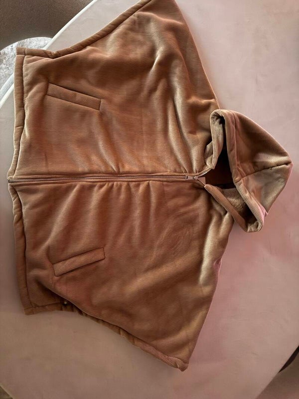 vest heeft ook een kap, is wat oversized maar heelt of op een wijd broekje