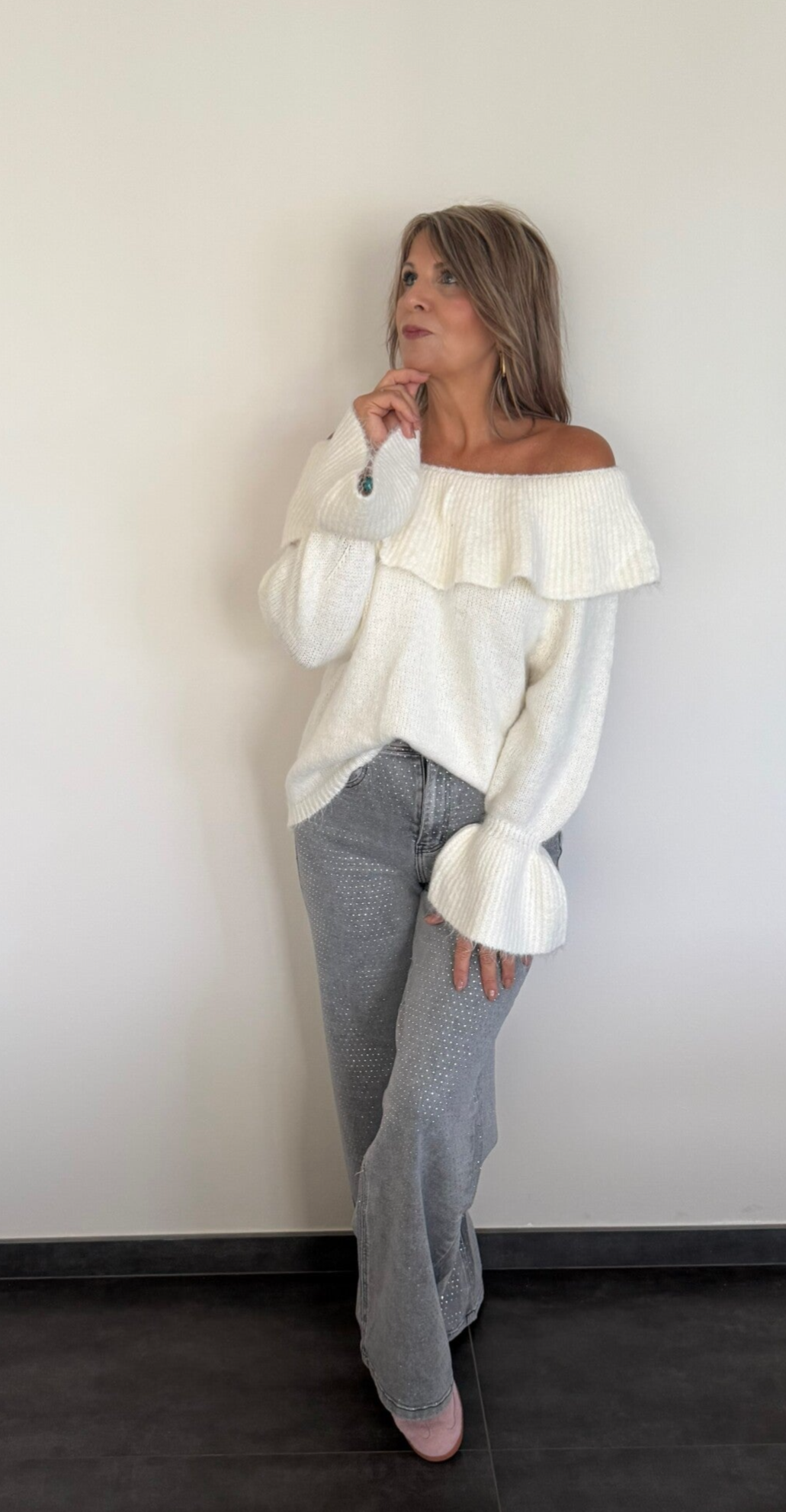Jeans met strass lichtgrijs