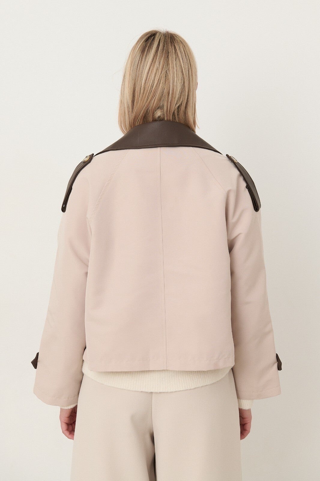 Jas beige met lederen kraagje