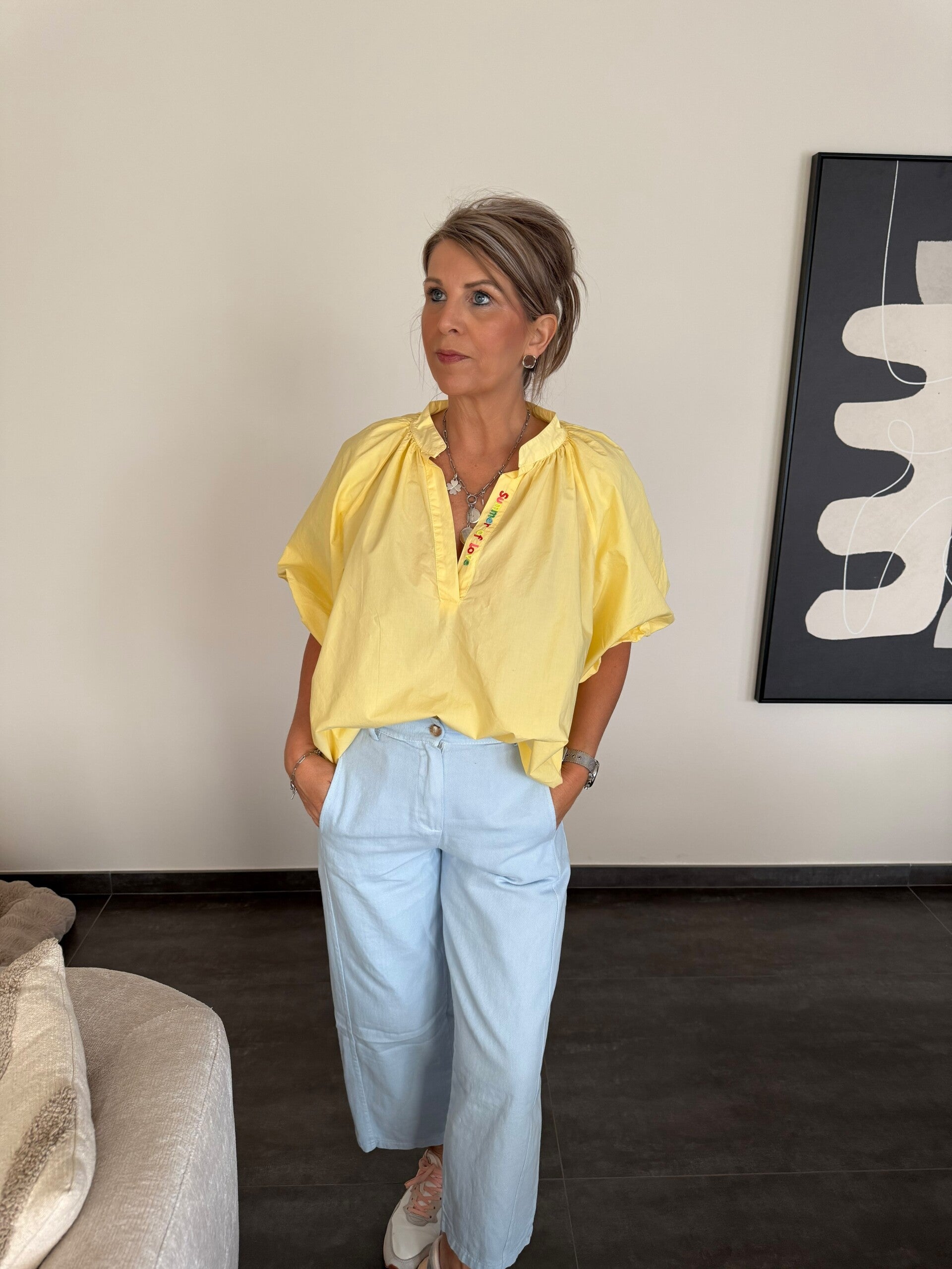 Blouse oversized summer of love geel
