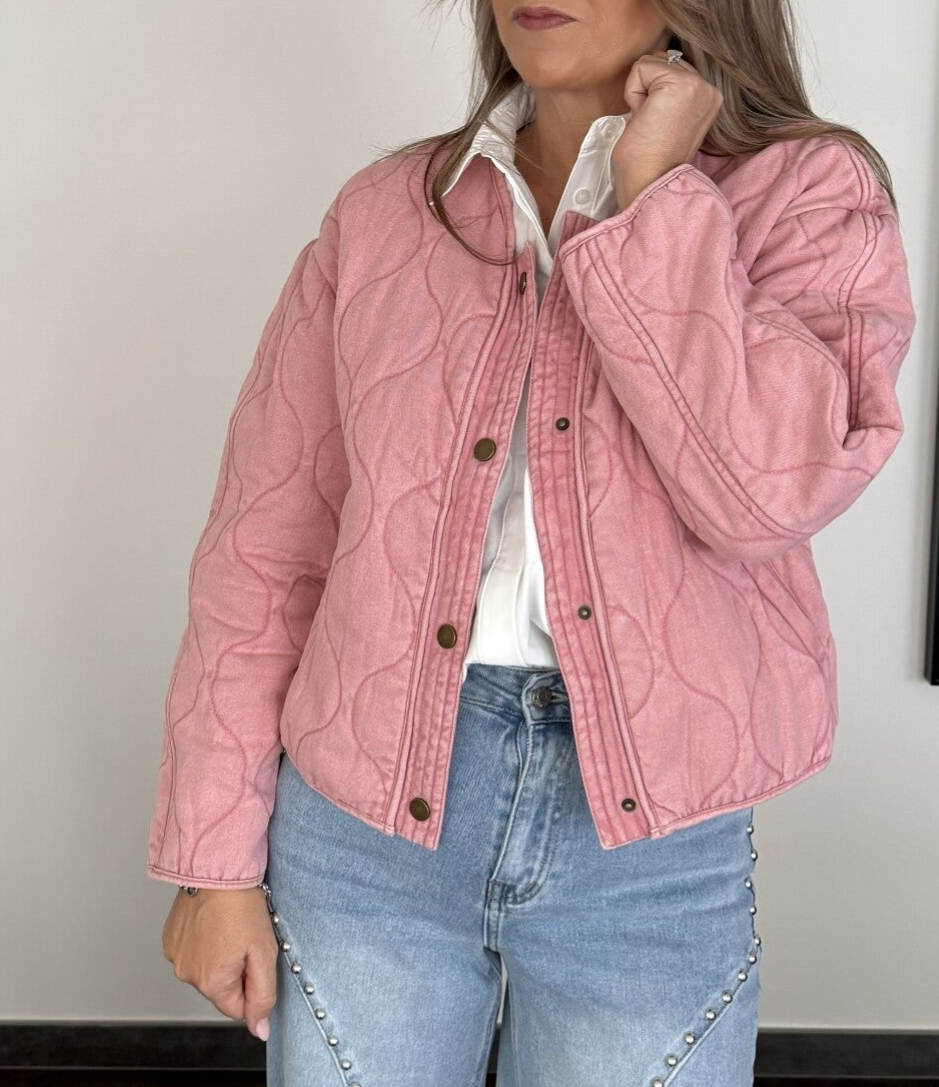 Jeansvest pink gewatteerd