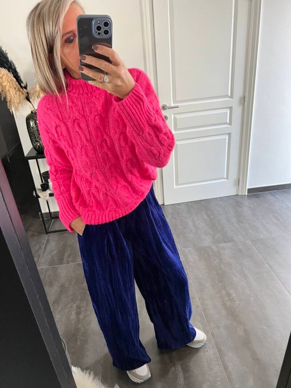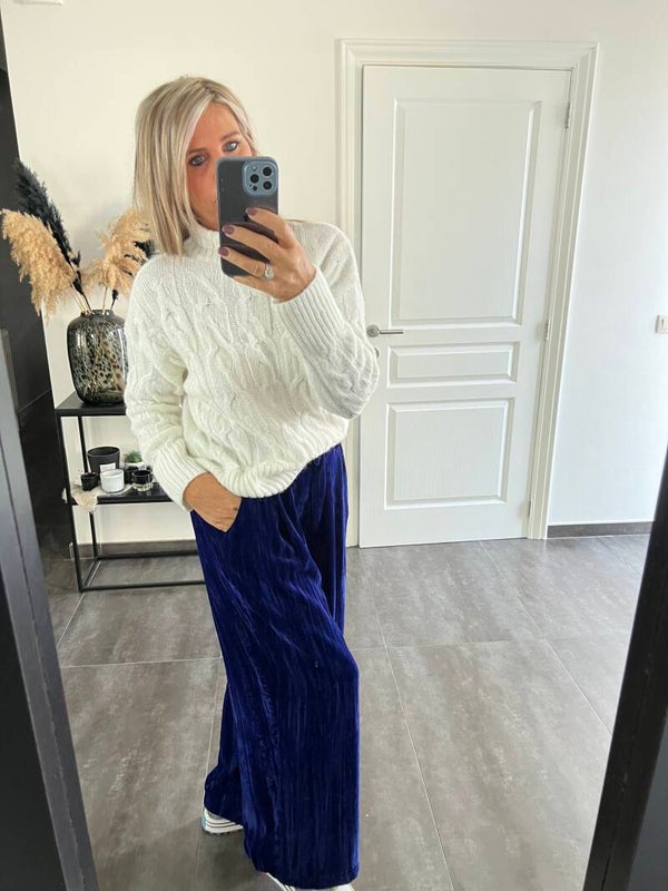 Deze prachtige broek heeft een ritssluiting en is afgewerkt achteraan met frons, die kan uitgerokken worden.